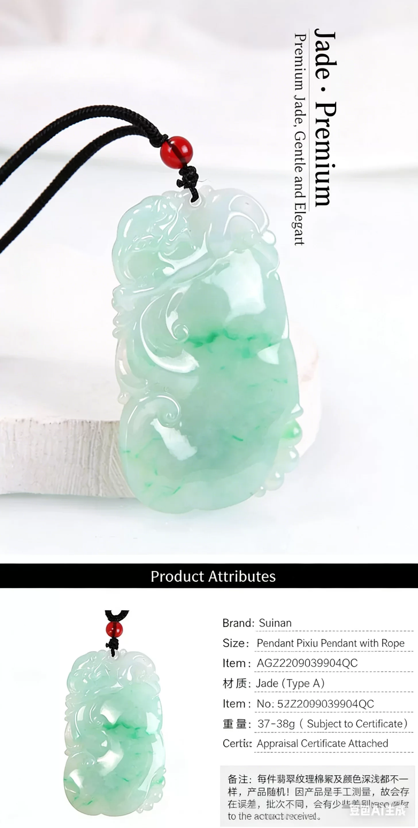 This natural grade A jadeite pendant delivers timeless elegance and exceptional value. It features genuine texture, durable luster, and cultural prestige, enhancing personal charm while offering potential appreciation. Ideal for daily wear or collection, it blends luxury, wellness symbolism, and versatile style for sophisticated, discerning consumers.